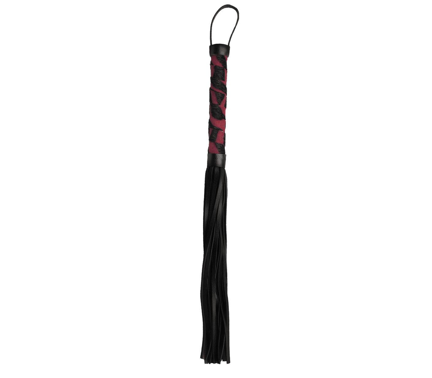 Login to see priceVegan friendly flogger with leatherette tails and furry animal print handle and silver stud detail. Available in leopard print & red zebra print. Matching items available.