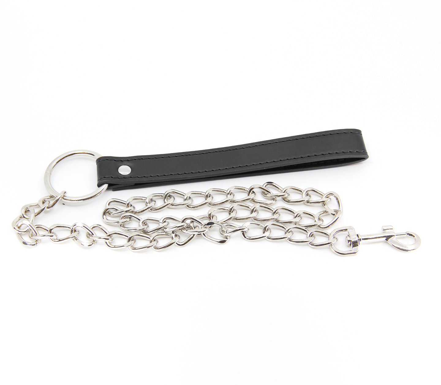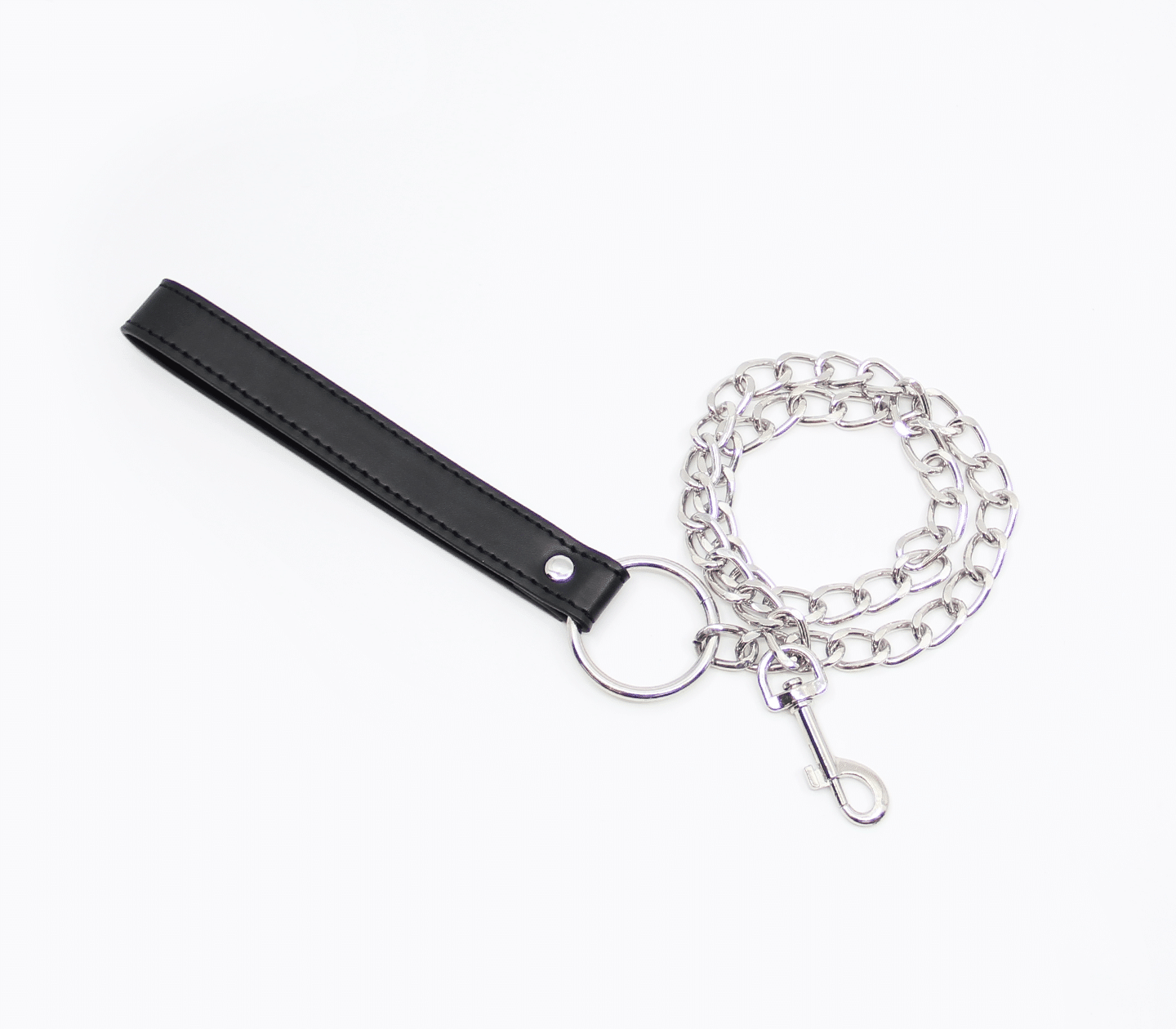 This leash from Berlin Baby is a great addition to any vegan friendly bondage kit. The chain lead features a faux leather handle, lined with velveteen coating. It’s the perfect size to attach to collars, cuffs & shackles. Available in two colour ways; black with black stitching & black with contrasting red stitching.
