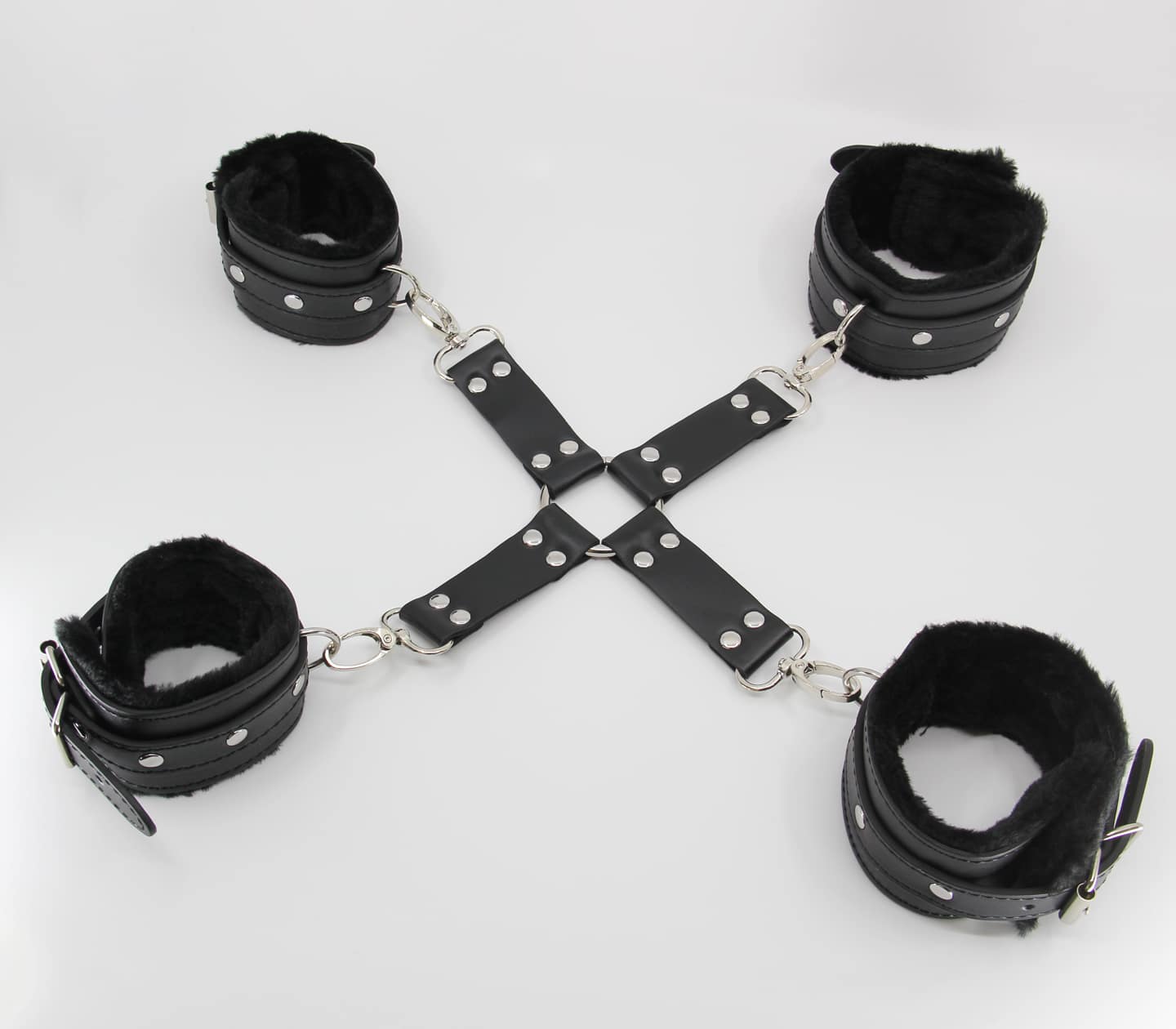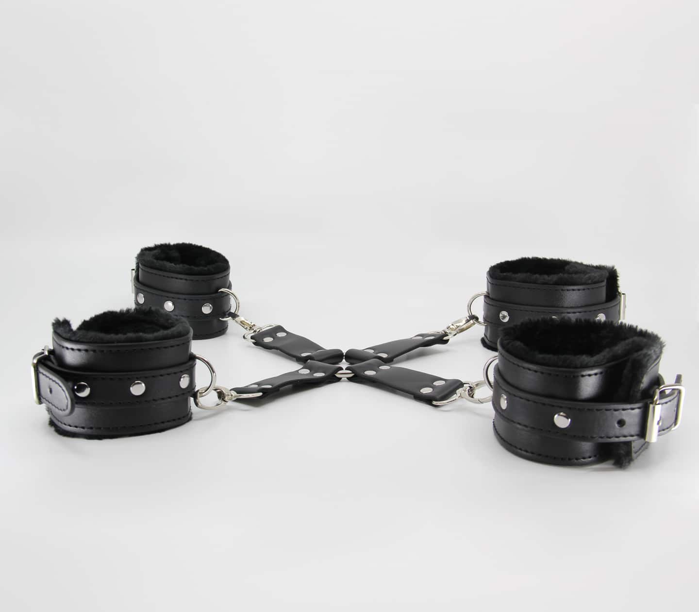 Login to see pricePU hog tie shackle with detachable faux fur lined ankle and wrist restraints.