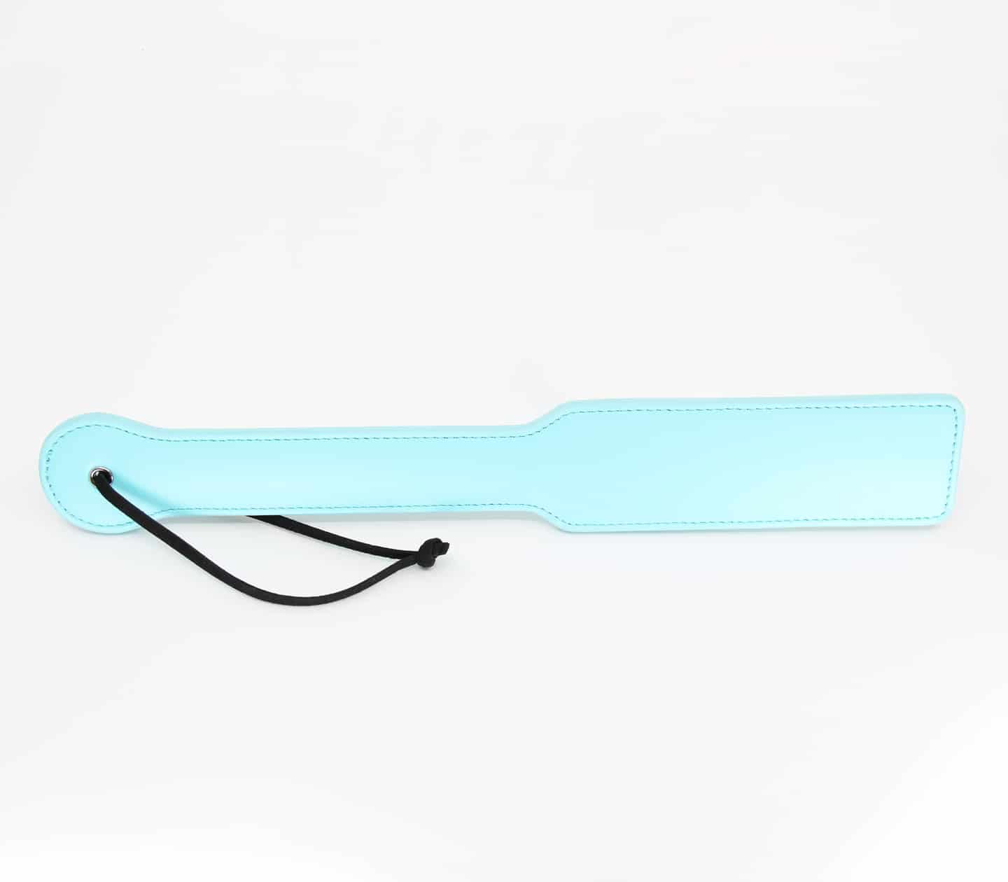 Login to see priceBright turquoise colour faux leather paddle with all round edge stitching and contrast back wrist strap.