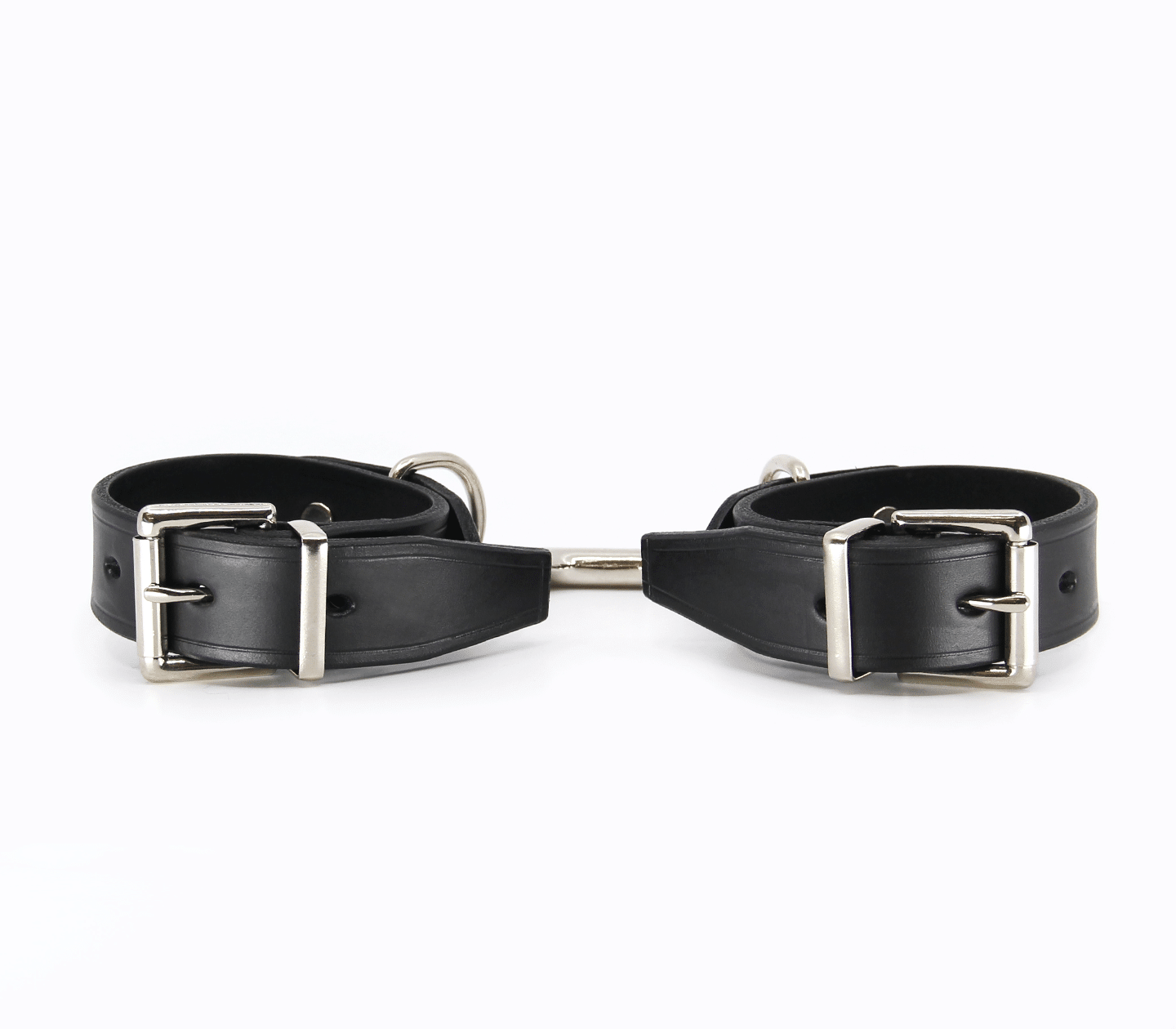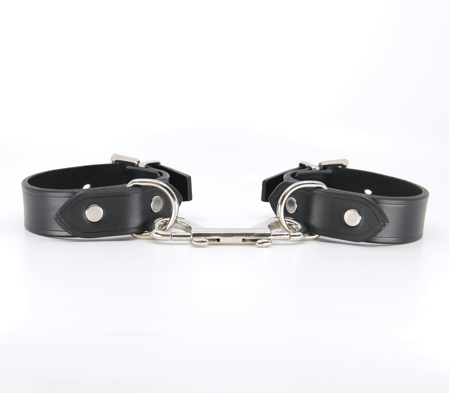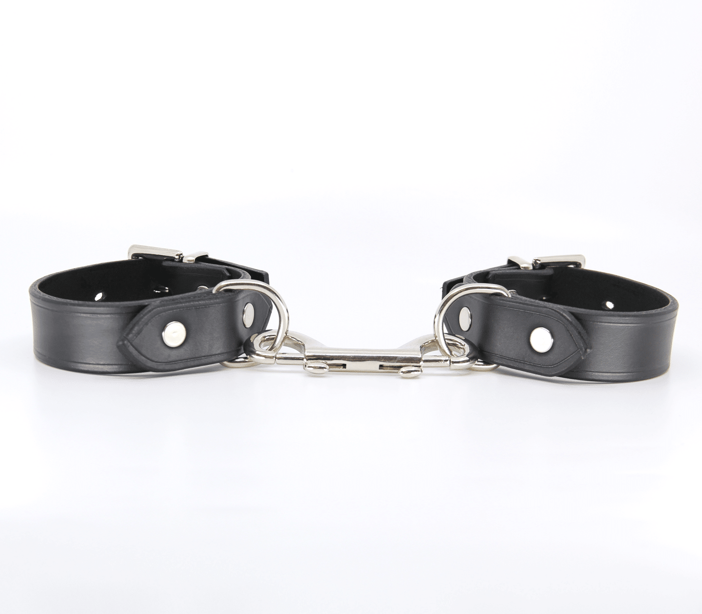 Classic unlined leather handcuffs with detachable double snap join. Hand crafted in Australia from the finest Italian leather. Each cuff sports a sturdy D-ring which can be used to connect your choice of chain or attach to a spreader bar.