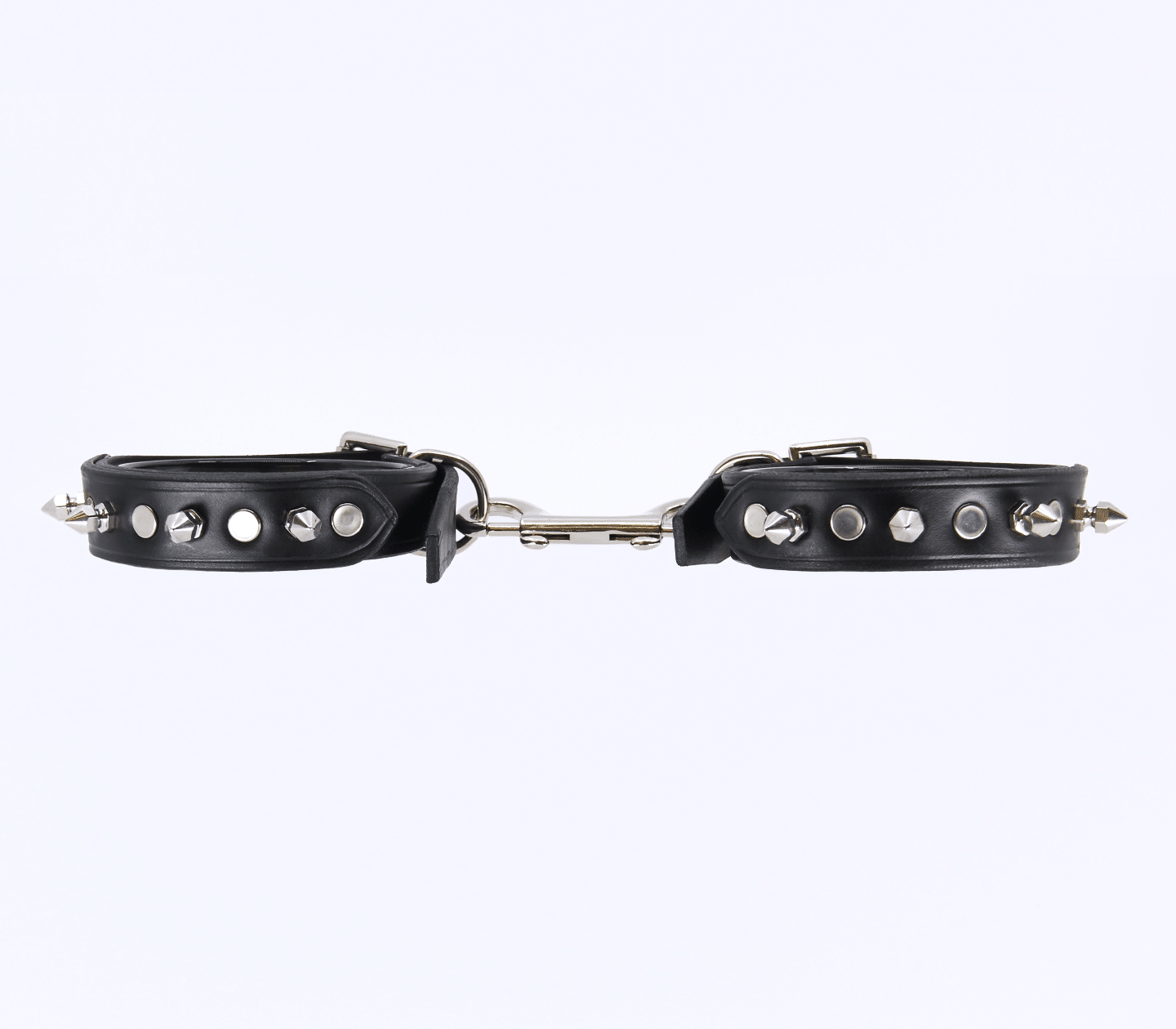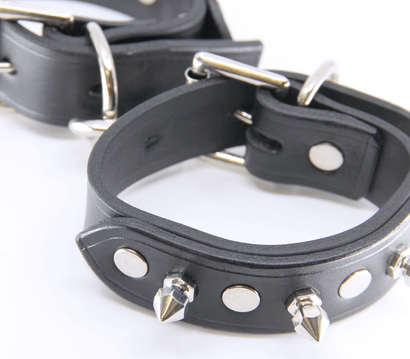 - Each cuff is embellished with three 12mm dog spikes
