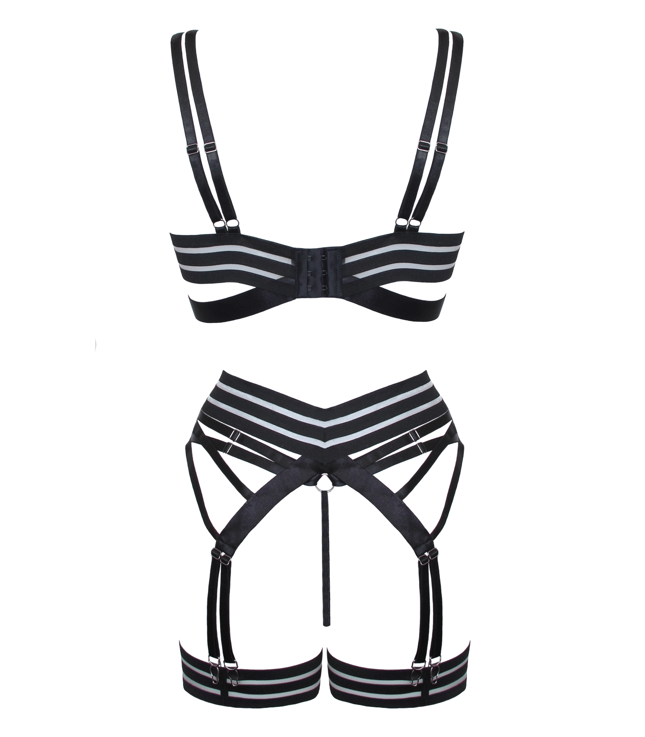 4/5 Pieces, bra, gstring, garter belt, two leg straps