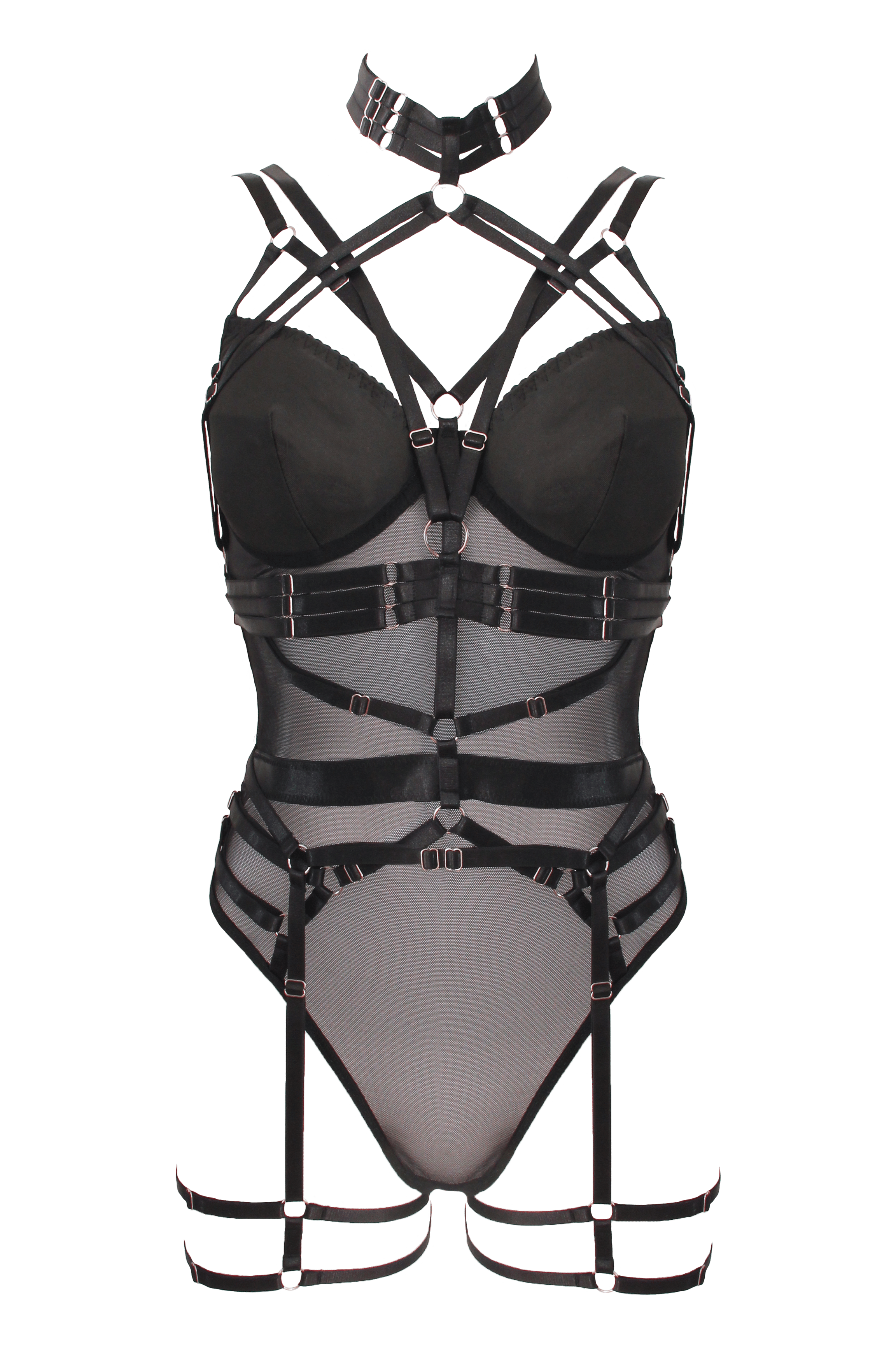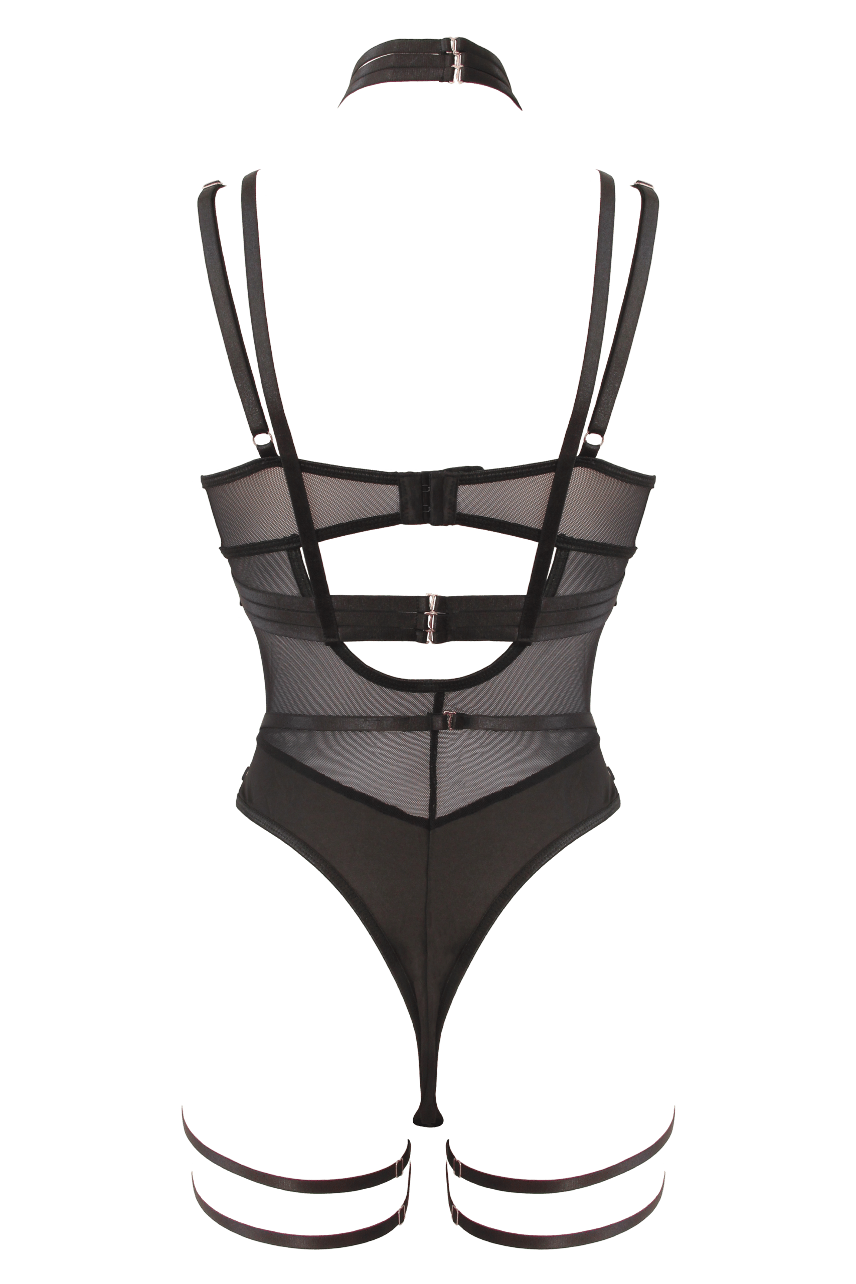 Bodysuit with elastic brace top and garter belt