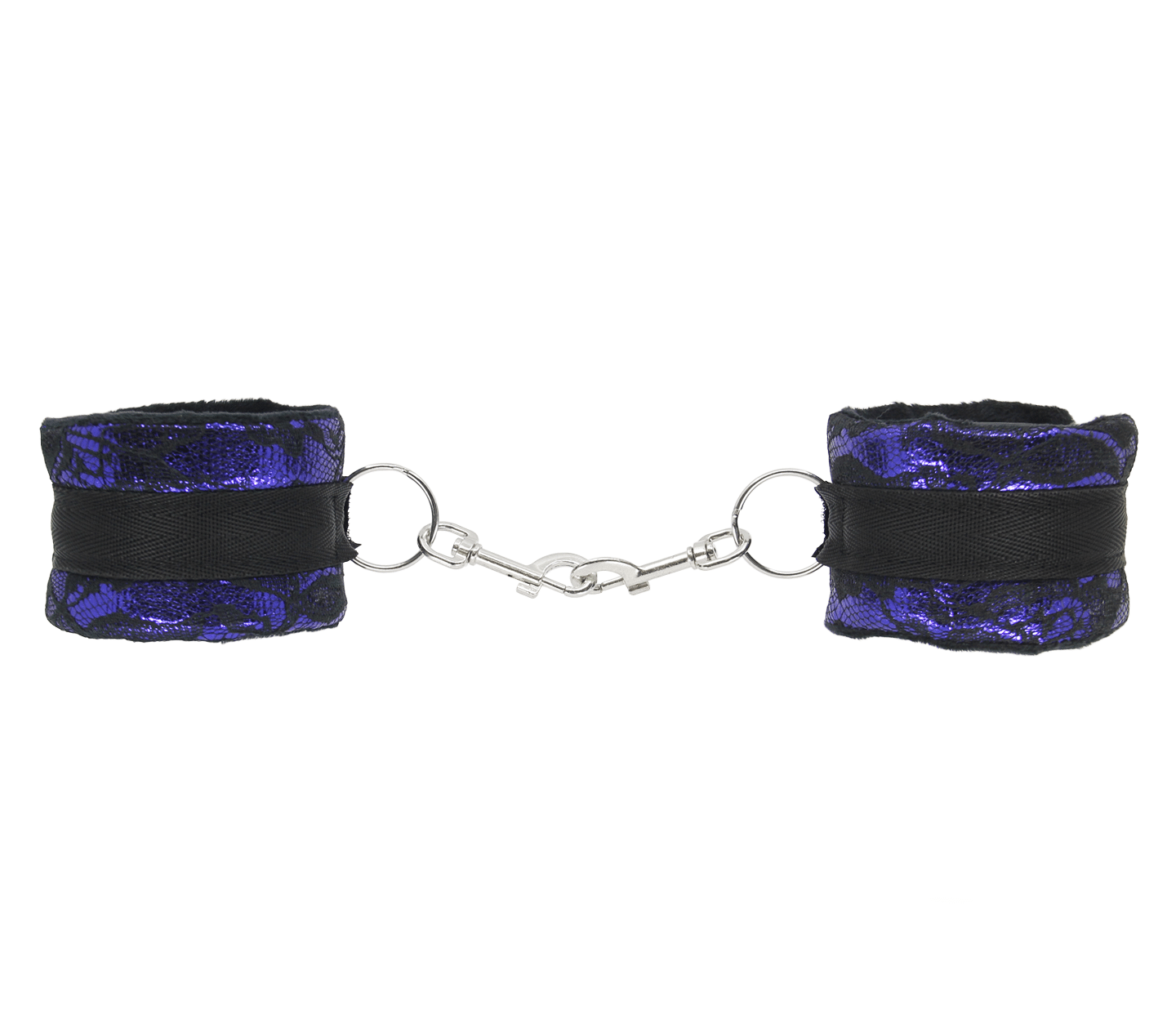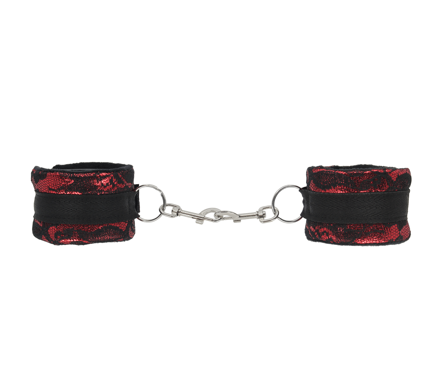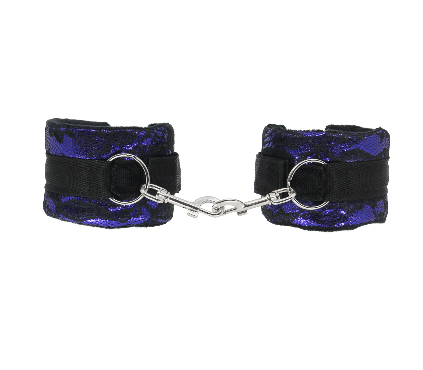 Each cuff sports a 2.5cm O-ring and single sided snap which can be used to connect you choice of chain or attach to a hogtie
